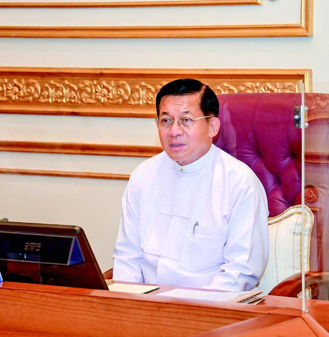 Members of the State Administration Council discussed enactment of the law opposing foreign interference, promotion of relations with the countries among ASEAN countries which have sympathy over Myanmar and enhancement of Myanmar-China relations, publishing of pamphlets on terror acts of terrorists CRPH, NUG and PDF across the nation, implementation of Dawei Deep Sea Port Project, reduction of diagnostic charge in examining the COVID-19 virus, and cooperation with relevant organizations for the life safety of local people in Kayah State. In his response, the Senior General said that the Ministry of Legal Affairs is assigned to scrutinize the country-wise laws related to the law opposing foreign interference. The government will encourage the production of value-added products but prohibit sales of raw materials of natural resources. State-owned and Tatmadaw-owned media are striving for disseminating the acts of terrorist organizations to the people. Disbursement of loans from the COVID-19 fund will depend on the financial situation. If the COVID-19 is under control, outbound tourism services will be allowed to be implemented. The projects contributing to the economic development of the State, including the Dawei Deep Sea Port Project, will be implemented. Necessary workshops and contests will be held for the enhancement of the educational qualification of students.