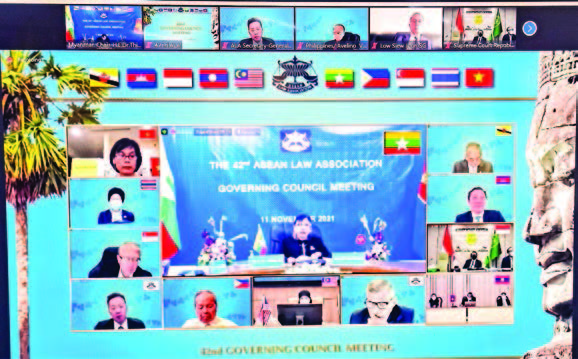 CHAIRPERSON of the ASEAN Law Association (Myanmar) Union Minister and Attorney-General of the Union Dr Thida Oo and officials attended the 42nd ASEAN Law Association Governing Council Meeting held through videoconferencing yesterday.