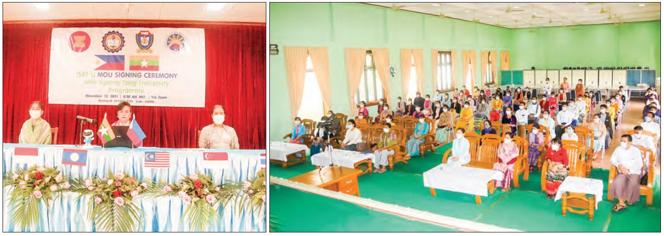 The Signing Ceremony was attended by presidents and rectors of the ASEAN universities, Rector of the Kengtung University Dr San San Mar, the prorectors, faculty members, the president and the vice-president of the Iloilo Science and Technology University, and the assistant president of the Chiang Rai Rajabhat University of Thailand.
