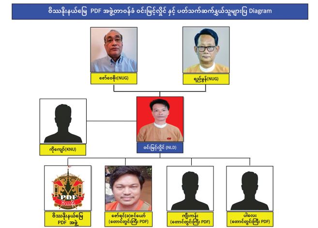 Moreover, he bought eight magazines and 216 9mm bullets from KNU member Ko Kyaw in June and handed them over to PDF member Par Lay of Taungdwingyi. In July, suspect Win Myint Hlaing appointed those in charge in Taungdwingyi, Magway, Myothit, Natmauk, Yesagyo and Aunglan to form Beikthanoe PDF. In connection with fugitive Zaw Wai Soe and fugitive Yi Mon, he demanded monetary assistance to purchase arms, ammunition and explosive devices. These were used in explosion and terror acts in Magway Region.