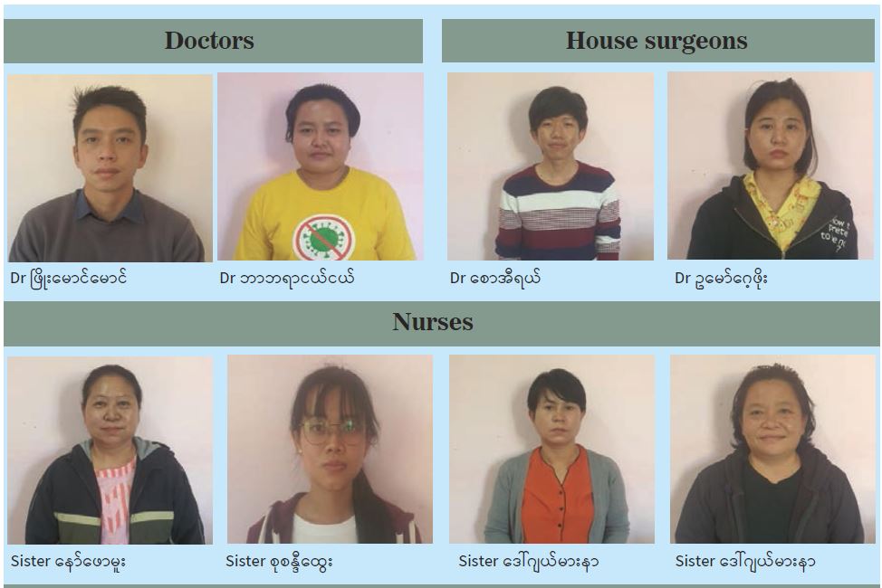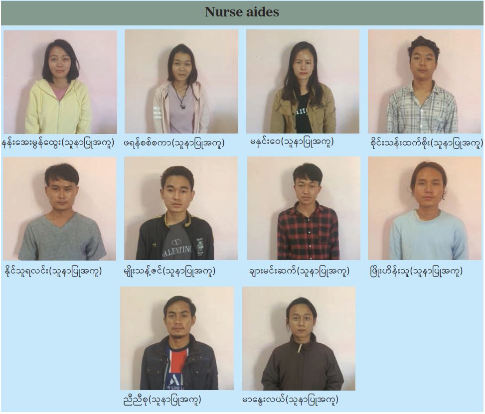 According to the initial statement of the arrested doctors and nurses, two doctors and four nurses participated in the CDM campaign in February 2021, and 10 nursing aides were from the Loikaw Public Hospital who volunteered in the clinic without involving in the CDM campaign. As the doctors and nurses who were involved in the CDM campaign were found charged under Section 505 (A) in March, actions will be taken against them under the law.