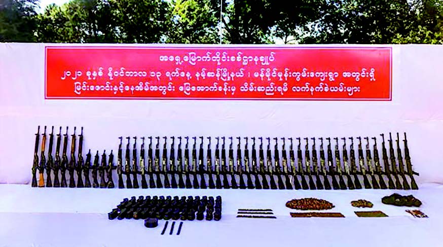 According to reports from some responsible people, weapons and ammunition were confiscated in Man Mai Mong Kwan Village, Namsang Township, northern Shan State for sale to terrorist groups in Magway, Mandalay and Sagaing regions.