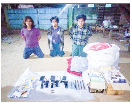 According to their confession, the police arrested So Min Tun and Thet Maung Maung Soe, who carry the magazines, at Thiri Myawady Hotel and seized six M22s, six AK-47s, one M16, seven pistols, one nine-shooter revolver, five nine-shooter revolver bullets, 300 point-22 bullets, 100 point-38 bullets, 50 7.65mm bullets, 150 9mm bullets and 50 7.62 bullets in their Super Custom car.