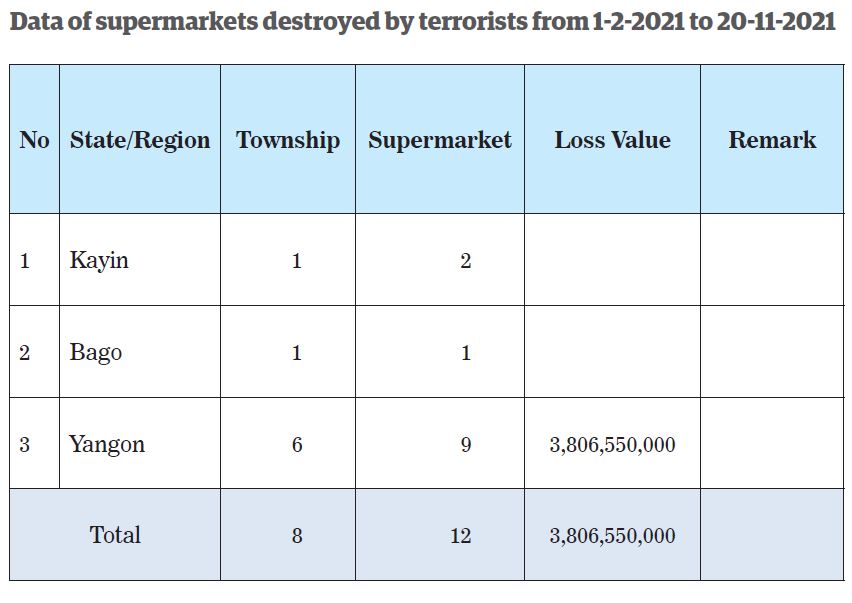 From 1 February up to 20 November 2021, a total of 12 supermarkets were destroyed by terrorist groups.