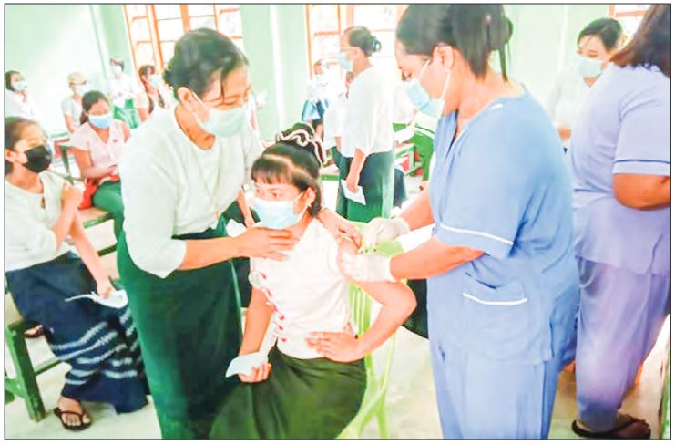 Similarly, 2,277 students in Tamway and North Okkalapa townships of Yangon Region received their vaccines while 4,495 students in 26 townships of Ayeyawady Region, 2,292 students in Maungtaw Township of Rakhine State and Paletwa Township of Chin State and 950 students in Toungoo and Htantabin townships of Bago Region.