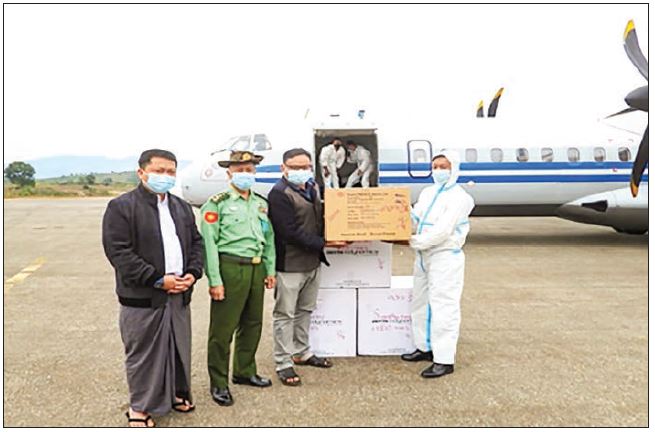 Yesterday, 9,500 doses of Sinopharm COVID-19 vaccines were transported to Sittway and 6,500 doses of Sinopharm COVID-19 vaccines to Thandwe, Rakhine State; 6,000 doses of Sinopharm COVID-19 vaccine to Lashio and 14,000 doses of Sinopharm COVID-19 vaccine to Kengtung, Shan State (North); 791 doses of Sinovac COVID-19 vaccine and 14,160 doses of Sinopharm to Dawei and 3,636 Sinovac and 28,000 doses of Sinopharm COVID-19 vaccine to Myeik, and 971 doses of Sinovac and 5,840 doses of Sinopharm COVID-19 vaccine to Kawthoung, Taninthayi Region respectively.