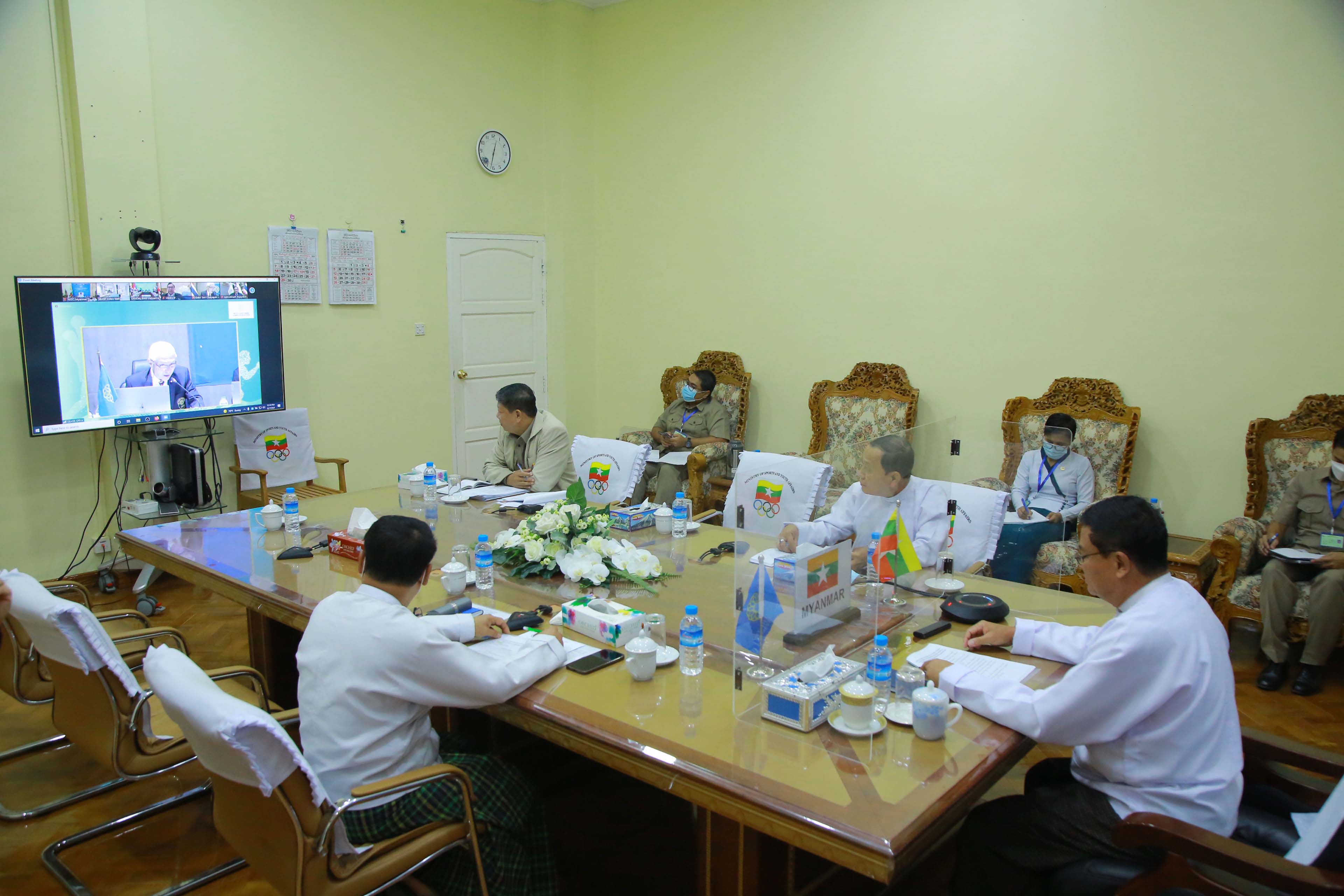 THE South-East Asian Games Federation (SEAGF) Council held a meeting for the successful holding of SEA Games yesterday afternoon through video conferencing in Nay Pyi Taw. The meeting was attended by Olympic Committee Chairpersons from Southeast Asian countries led by SEAGF office members. Chairman of the Myanmar Olympic Committee Union minister for Sports and Youth Affairs U Min Thein Zan, General Secretary of the committee Deputy minister U Myo Hlaing and officials from the committee also attended the meeting.