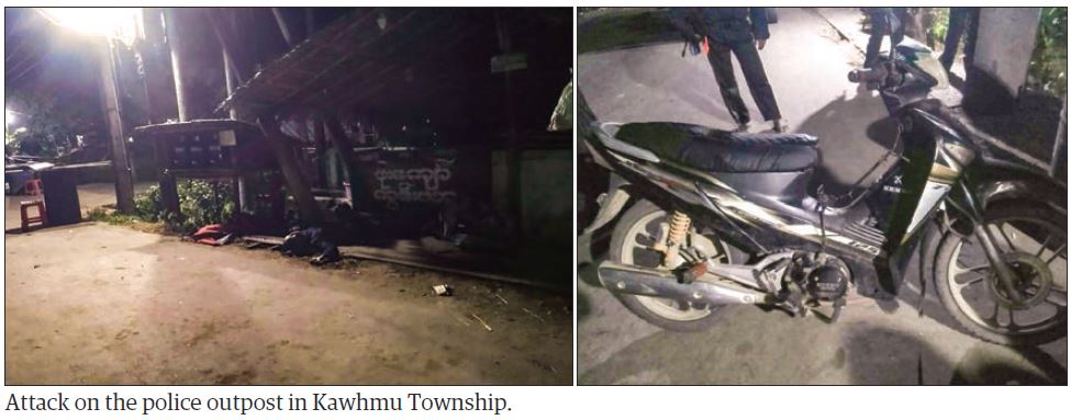 Similarly, at about 3:30 am yesterday, terrorists attacked Kan Kaung police outpost beside the Yangon-Mandalay Expressway in Meiktila Township of Mandalay Region using grenades and homemade bombs.