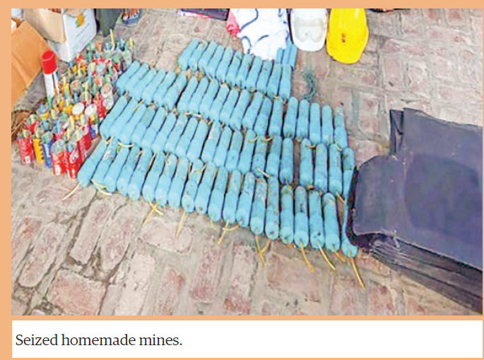THE combined security forces conducted a patrol at the corner of 30th and 63rd streets in Pyigyimyathman Ward of Chanayethazan Township on 8 December. During the patrol, they examined Khine Zin Zuu and seized pamphlets and one cloth bearing letters for ‘Silent Strike’. Then, they raided her house in Pyigyimyathman Ward of Chanayethazan Township and seized 100 homemade mines, 33 gunpowder cords, 30 shields, three bullet-proof vests, one Bakatha flag with peacock logo, various kinds of medicines and other materials used in protests.