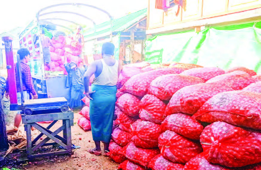 There are about 10 onion wholesale centres in Minbu Township. The buying price is K250/300 while the selling price at K400/500 and the wholesale price is K800/900 per viss, according to wholesale centres of Minbu Township.— Zayar Htet (Minbu)