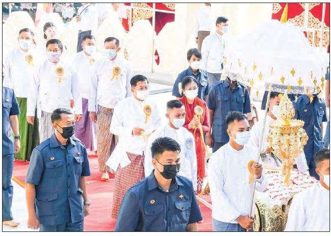 Also present at the ceremony were Chairman of the State Administration Council Prime Minister Senior General Min Aung Hlaing and wife Daw Kyu Kyu Hla, members of the State Administration Council Admiral Tin Aung San and wife, General Maung Maung Kyaw and wife, Lt-Gen Moe Myint Tun, Council Joint Secretary Lt-Gen Ye Win Oo and wife, Union ministers, the chief minister of Yangon Region, the Commander-in-Chief (Navy) and wife, senior military officers of the Office of the Commander-in Chief and their wives, the commander of Yangon Command, the Yangon mayor, guests, well-wishers, officers, other ranks and families, in addition to religious associations and local people.
