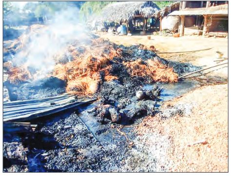 On 17 December, the armed terrorist groups (still investigating) entered Thakayta Village of Taze Township ofSagaing Region and shot the villagers and also committedarson attacks. The attacks destroyed one two-storey house built of brick, one Forland truck 7N/8644, one gold chain,K500,000 and about 300 baskets of paddy owned by U KyawShwin, another one two-storey house built of corrugated iron sheet/bamboo matting of Ko Moe Min and one two-story house built of corrugated iron/sheet/bamboo matting of Daw Khin Htay.