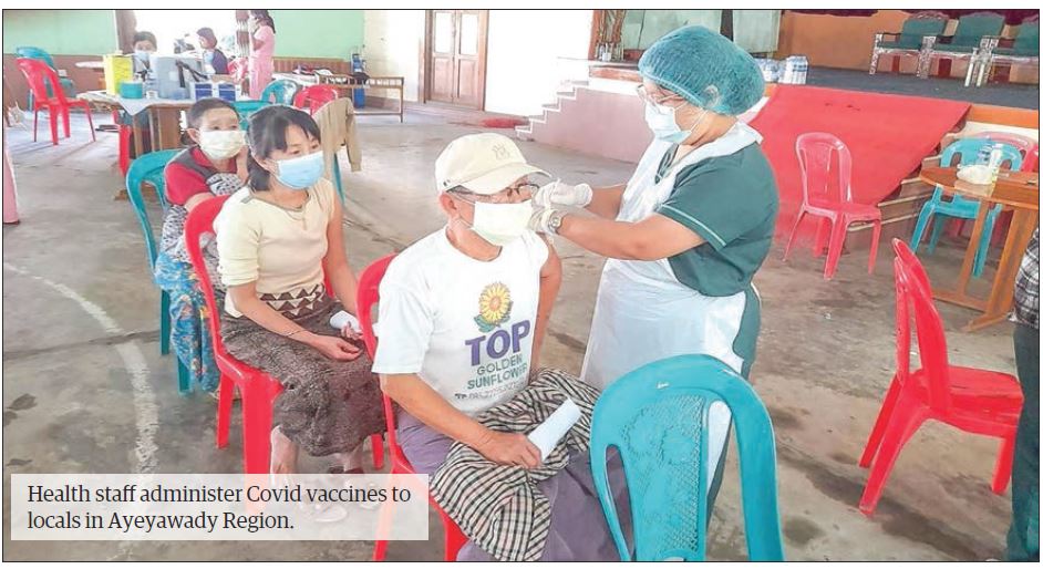 Doctors and nurses from public hospitals, medical teams, relevant healthcare workers in collaboration with volunteers have already given COVID-19 vaccines to 10,548 people from 14 townships in northern Shan State, 3,095 people from five townships in eastern Shan State, 11,297 people from 14 townships in Kayin and Mon states, 2,450 people from three townships in Yangon Region, 27,000 people from 26 townships in Ayeyawady Region, 34,731 people from 10 townships in Rakhine State, 9,637 people from seven districts in Mandalay Region and 1,920 people from Bago Region respectively.