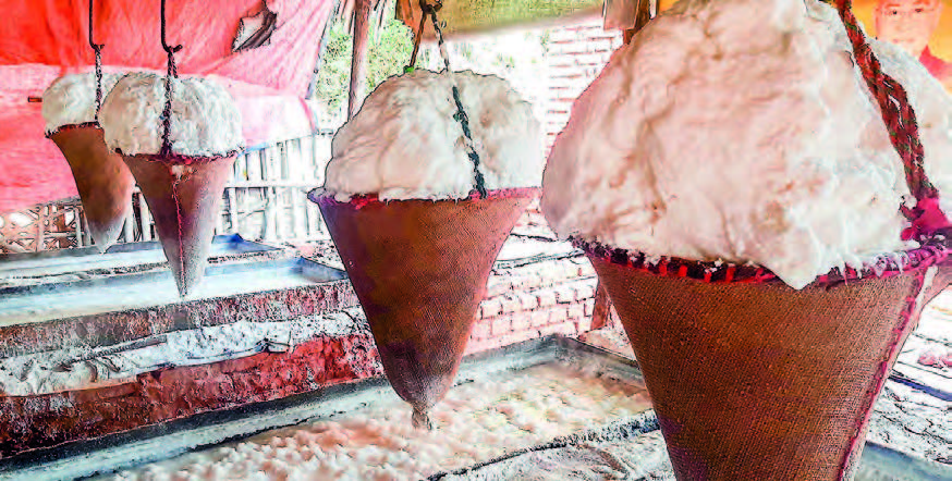 In Mon State, the salt production period is December, January and February. During this period, most salt farmers will sell their raw salt to cover labour costs and other expenditures.