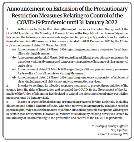 Submitted by moiuser on 2 January 2022 Announcement on Extension of the Precautionary Restriction Measures Relating to Control of the COVID-19 Pandemic until 31 January 2022