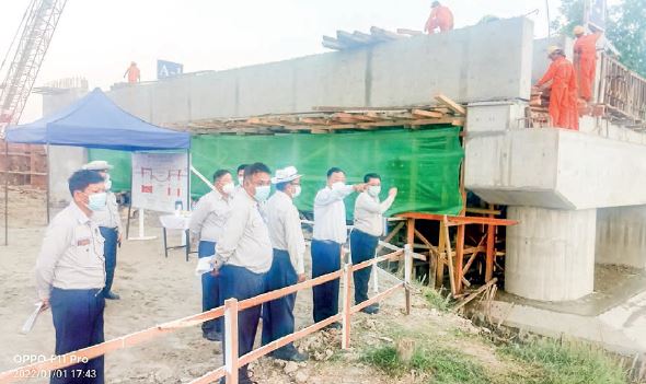 Afterwards, they inspected the construction of Kyunkon bridge, concrete and asphalt road paving on the 18 ft wide Bogale-Mawlamyinekyun-Kyonmange Road (24/1-25/0), and the strength of Kyunpyathat bridge, Kywechanyekyaw bridge, and Dedaye bridge, the construction of Kungyangon detour and Tawpale Bridge at 1/3-1/5 mile.
