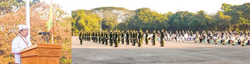 The flag hoisting platoon led by Captain Tin Naing Htoo raised the flag at 4:20 am. At 7 am, Chief Minister U Hla Soe of Yangon Region and the attendees saluted the State Flag together with the Guard of Honour. The Guard of Honour also saluted the nation’s fallen leaders and soldiers and took the four-point oath. Afterwards, the chief minister read the message for the 74th Independence Day sent by Chairman of the State Administration Council Prime Minister Senior General Min Aung Hlaing.