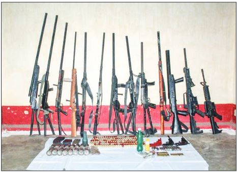 SECURITY forces fought against terrorists in U Nout Village, Yinmabin Township, Sagaing Region yesterday and five bodies, weapons and ammunition of the terrorists were confiscated.