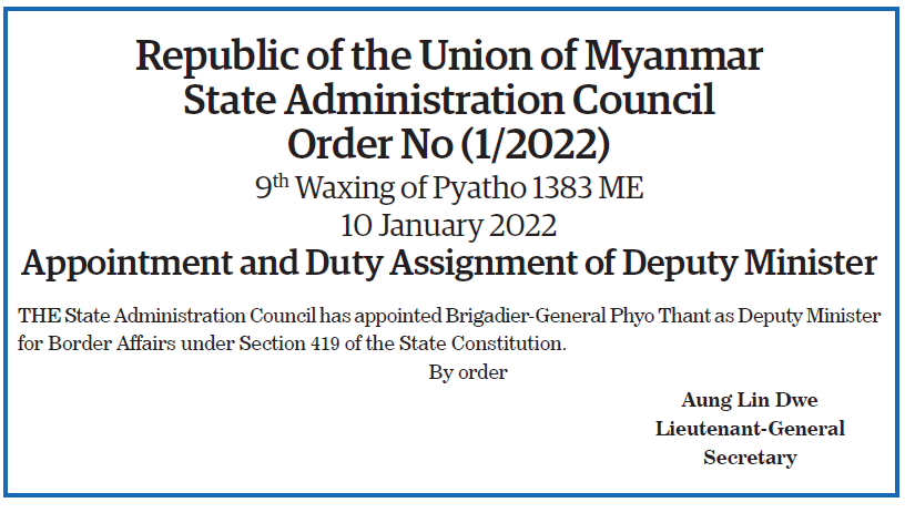Submitted by moiuser on 11 January 2022 Republic of the Union of Myanmar State Administration Council #TheGlobalNewLightOfMyanmar
