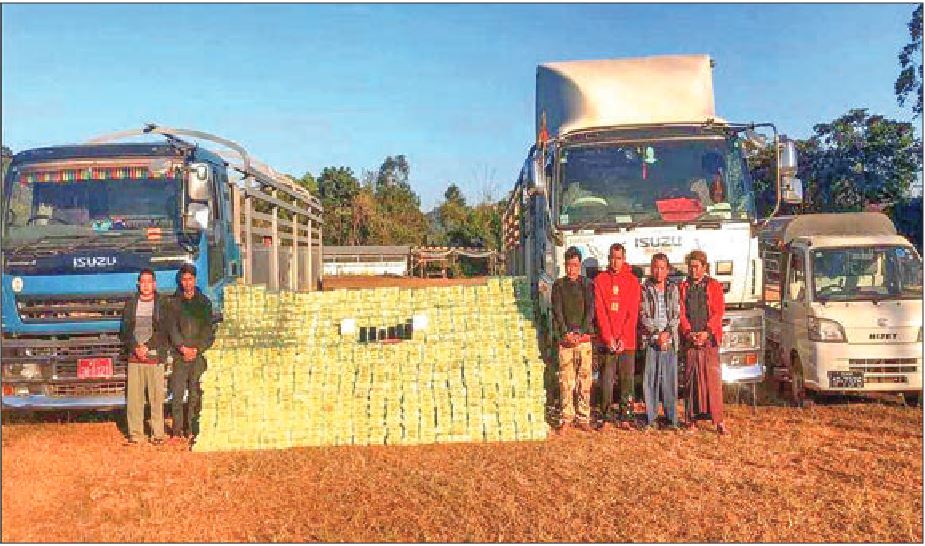 In the accident on 7 January, the combined team consisting of Anti-Narcotics Task Force members seized 635 kilogrammes of ICE (methamphetamine) in a 12-wheel Isuzu truck driven by Myit Soe together with Kyaw Sai (aka) Ar Kyone on Loilem-Taunggyi Road in Loilem Township of Shan State (South). According to the investigation, they also seized a further 603 kilogrammes of ICE (methamphetamine) in a 12-wheel truck driven by Thet Zuu and Zay Khaung between Cho Kham and Mongpon villages on Loilem-Taunggyi road.