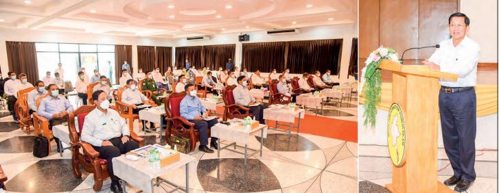 First, Chairman of Taninthayi Region Fisheries Federation Chair of Myeik Corporation Public Co Ltd U Hla Than reported on border trade, running of industrial zones, development of Myeik region, construction of Htonkha-Thebyu-Mawtaung road, functioning of Mawtaung border, shrimp farming, trawlers and ongoing projects and Myeik International Fish Auction Market and Industrial Zone project in-charge U Han Htoo Aung on the plan to implement the project, Secretary of the Taninthayi Region Fisheries Federation U Thet Soe on offshore and onshore trawlers, installation of VMS, export of marine products, and project director U Aye Min Aung on the Myeik district project to be implemented by BBWI & MCPC Co Ltd in Taninthayi and Myeik townships.