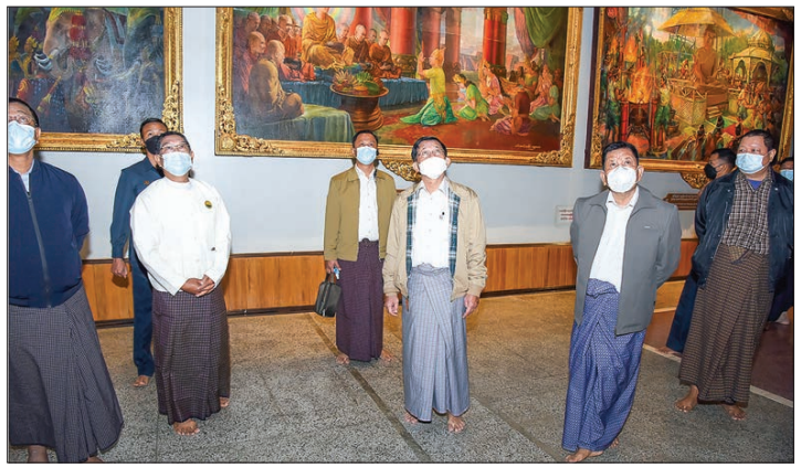 After viewing round the Myanmar handicraft booth and the historic art gallery in the precinct of the image, the Senior General instructed officials to maintain the objects displayed in the booths and valuable paintings for existence, systematically compile the data for the history through ancient object donors for observation of new generations, and take care of original marks and evidence of objects in renovation tasks.