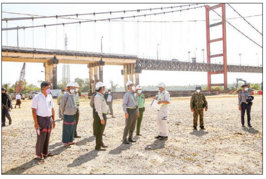 Chief Minister U Saw Myint Oo of the Kayin state government, accompanied by cabinet ministers and departmental officials inspected the construction of the new Gyaing (Zarthabyin) Bridge on the morning of 24 January.