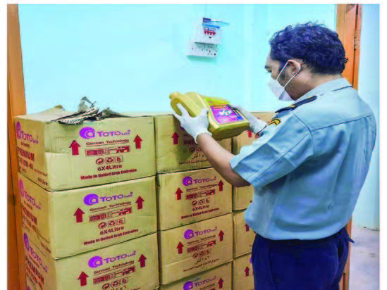On 1 February, a combined inspection team under the management of the Illegal Trade Eradication Task Force seized K1,440,000 worth of engine oil containers under the Customs Law.