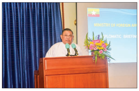 UNION Minister for Foreign Affairs, U Wunna Maung Lwin held a diplomatic briefing on the recent development in Myanmar at the Ministry of Foreign Affairs in Yangon on 8 February 2022.