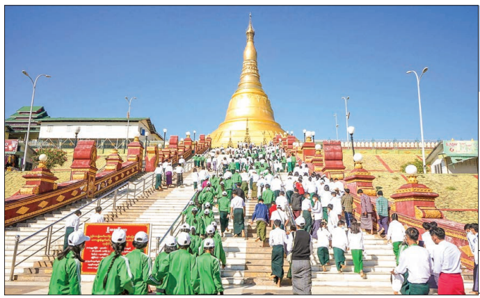The officials arranged the study tour to the construction site of Maravijaya Buddha Image, Uppatasanti Pagoda, National Museum (Nay Pyi Taw) and Nay Pyi Taw Water Fountain Park for the students.