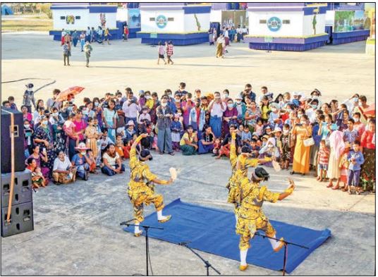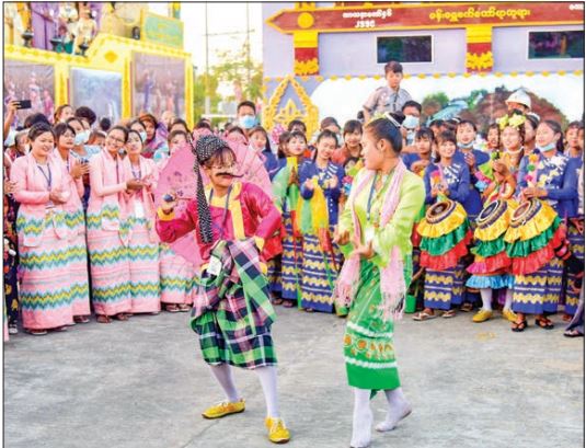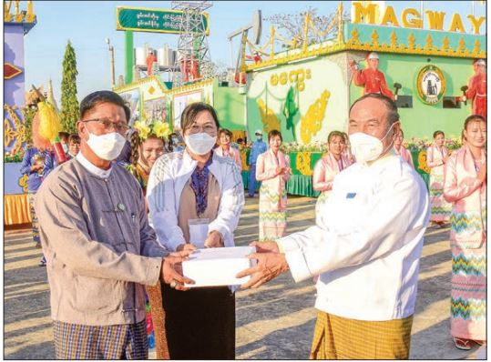 Union Minister at the Union Government Office (2) U Chitt Naing enjoyed the performance of the Magway Region dance troupe that won first prize in the evening and gave presents to 108 members of the dance crew.