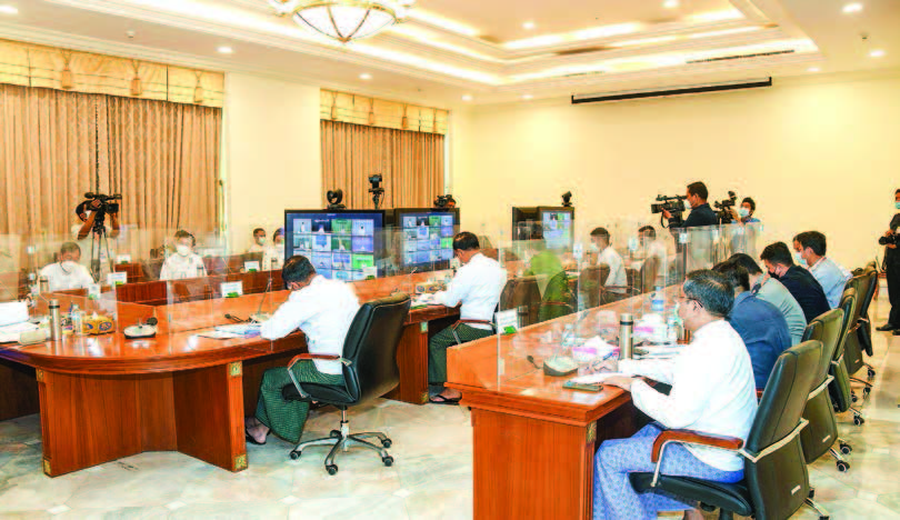Those present at the meeting included Union Ministers, Deputy Ministers and Senior Tatmadaw officers from the Office of the Commander-in-Chief. the chair of Nay Pyi Taw Council and Chief Ministers of respective regions and states attended the meeting through video conferencing.