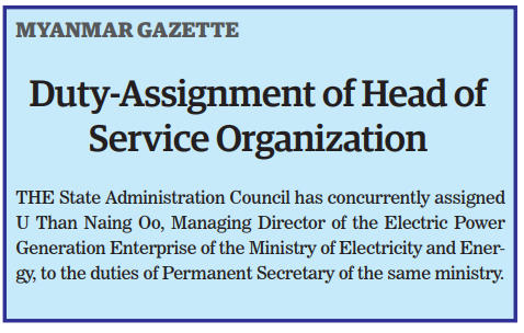 Submitted by moiuser on 8 March 2022 Duty-Assignment of Head of Service Organization #TheGlobalNewLightOfMyanmar