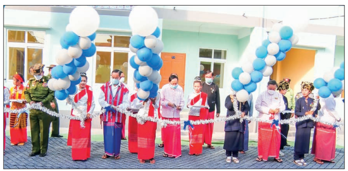 SAC member Dr Banyar Aung Moe and party cut the ribbon to launch the new staff housing. Then, the Mon, Pa-O and Kayin cultural dance troupes performed and the officials gave cash awards.