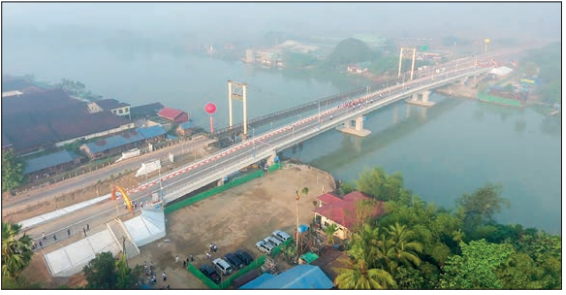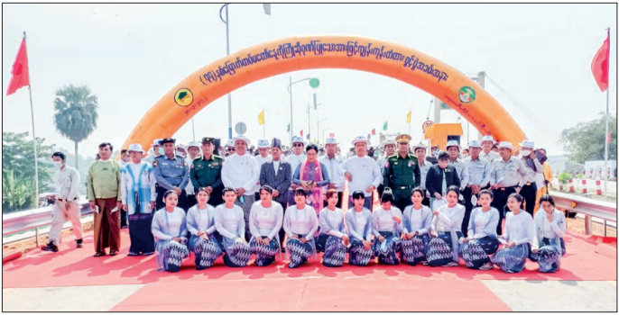 Afterwards, SAC members Daw Aye Nu Sein and U Moung Har, Union Minister for Construction U Shwe Lay, the Ayeyawady Region Chief Minister, and the command commander cut the ribbons to open the bridge.