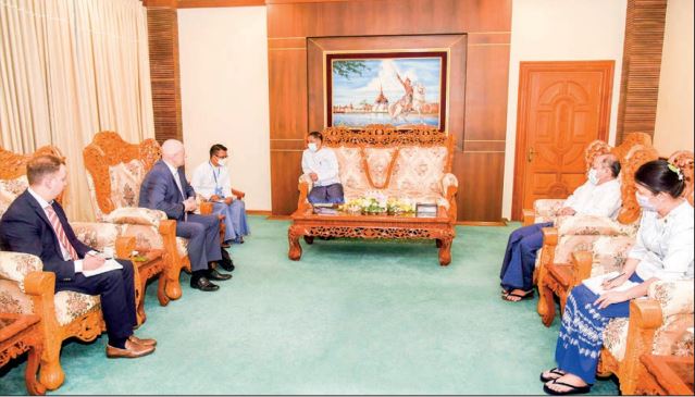 U Ko Ko Hlaing, Union Minister for International Cooperation received the delegates from the Eurasian Economic Commission and the Russian Business Group at 4:00 am on 25 March 2022 at the Ministry of International Cooperation in Nay Pyi Taw.