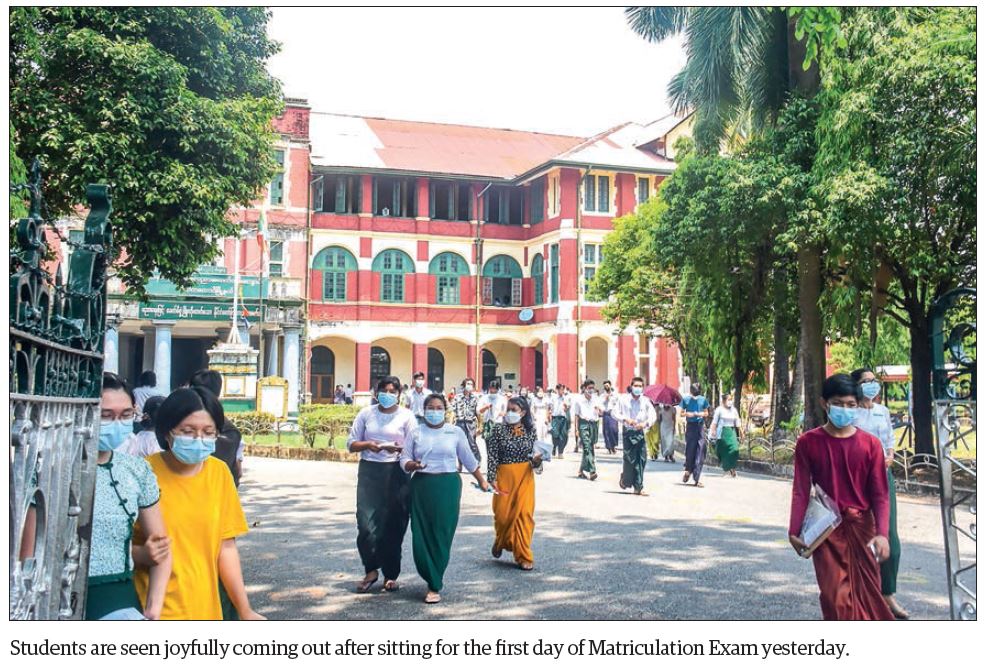 The students sat Myanmar Language yesterday. Today will be English while the mathematics will be on 2 April, and 3 April (Sunday) will be an off day.