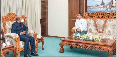 U Ko Ko Hlaing, Union Minister for International Cooperation of the Republic of the Union of Myanmar, received Mr Vinay Kumar, Ambassador Extraordinary and Plenipotentiary of the Republic of India to the Republic of the Union of Myanmar at 3:00 pm on 6 April 2022 at the Ministry of Foreign Affairs in Nay Pyi Taw.