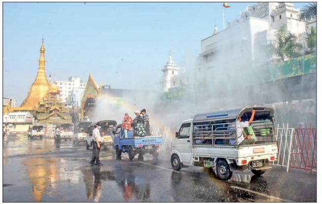 On the first day of Thingyan, the Yangon residents participated in walking Thingyan at the Maha Bandoola Park and playing water at the pandals of the People’s Square, the Inya Lake, district and townships, respectively.