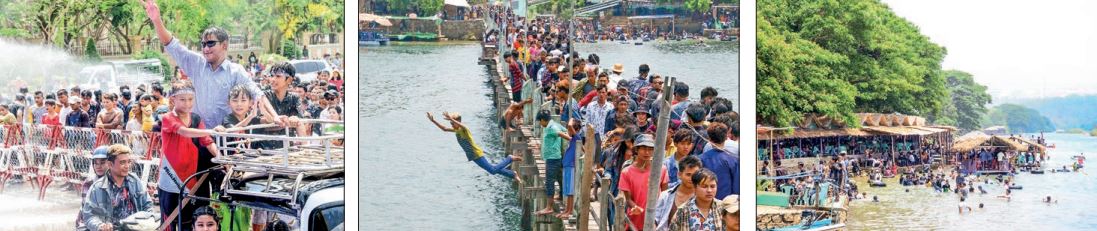 In addition, Thingyan lovers and water splashers were also seen happy at the Walking Thingyan Festival held in the Nay Pyi Taw Water Fountain Park. Many holidaymakers relaxed at the Hlaykhwintaung Beach Resort, Kyi Taung riverside, and Awaiya Beach Resort in Pyinmana Township. To thoroughly enjoy the water festival, relevant authorities were providing security and carrying out awareness-raising campaigns to ensure safety during recreation. A visitor at the Kyitaung riverside said, “I have come here with my family, and we will visit other places worth visiting; I would like to urge friends to visit Nay Pyi Taw during this Thingyan.”