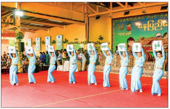 In the evening, the Vice-Senior General presented gifts and cash rewards to the artistes and choral dance troupes after watching the singing and dancing entertainment of famous artistes and vocalists together with choral dance troupes at the Nay Pyi Taw Mayor’s Maha Thingyan pavilion and the family pavilions of the Ministry of Home Affairs.