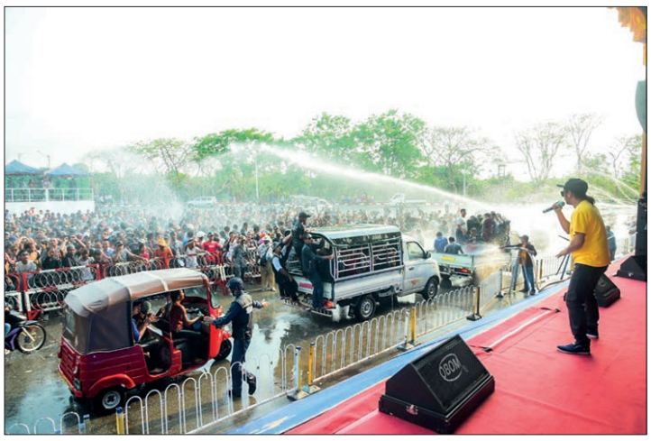 THINGYAN revellers, Tatmadaw members and families joyfully enjoyed the water-throwing festivities at the pavilions in Nay Pyi Taw Council Area on the Thingyan Akyat Day of Myanmar’s traditional Maha Thingyan Festival 1383 ME.