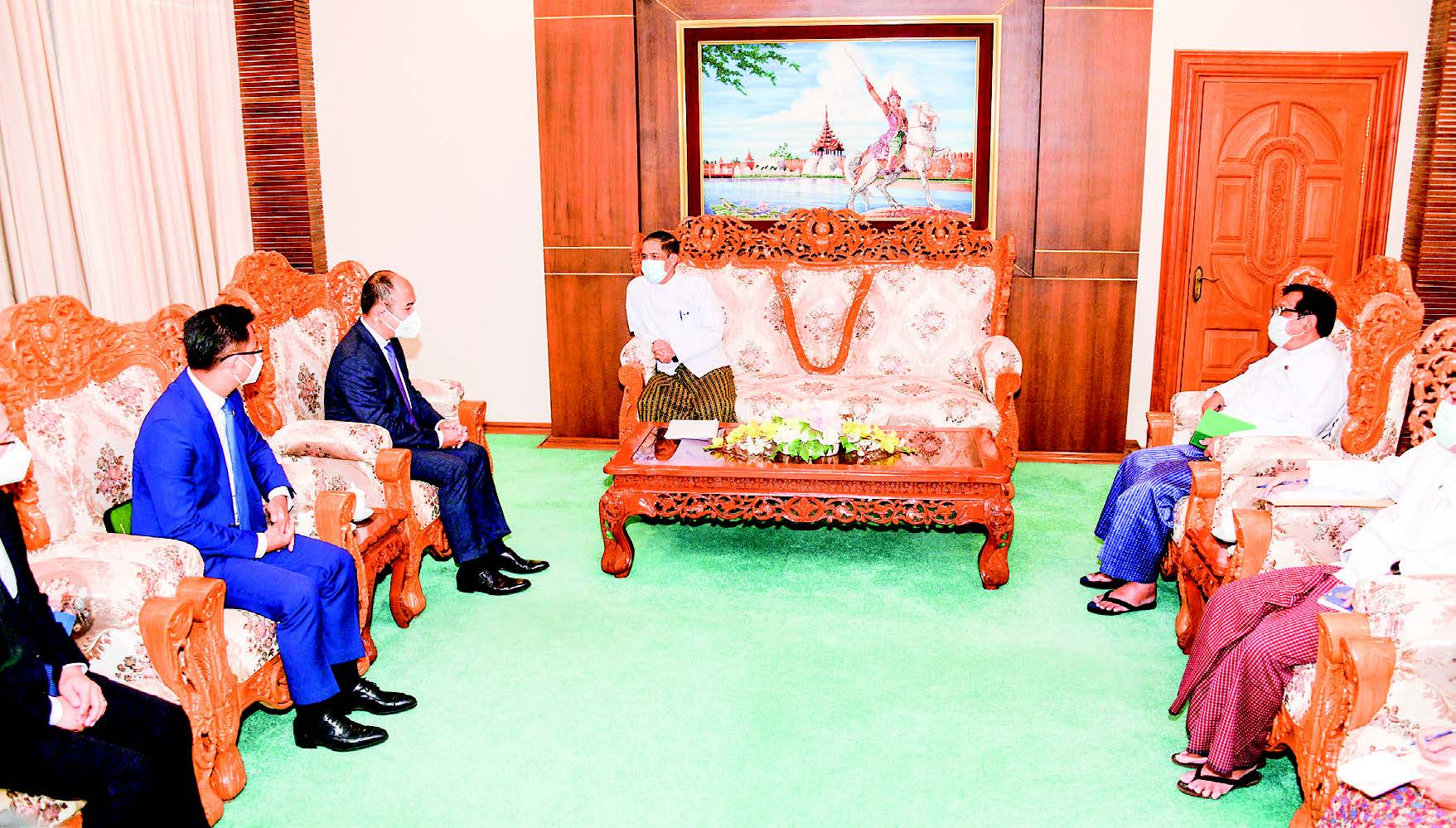 U Ko Ko Hlaing, Union Minister for the Ministry of International Cooperation and Chairman of the Task Force for the facilitation of ASEAN Humanitarian Assistance to Myanmar through the AHA Centre received a Cambodian delegation led by Dr Kung Phoak, Secretary of State for the Ministry of Foreign Affairs and International Cooperation and Head of the office of the Special Envoy of the ASEAN Chair at 11:45 am on 21 April 2022 at the Ministry of International Cooperation, Nay Pyi Taw.