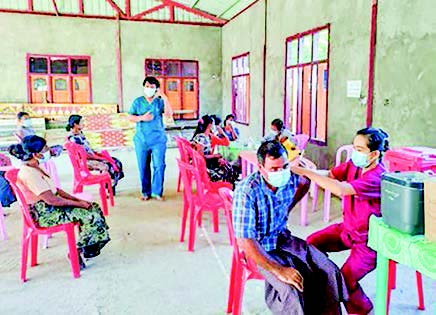 Yesterday, doctors and nurses from People’s hospitals, medical teams from the Tatmadaw, relevant healthcare workers, in collaboration with volunteers, gave COVID-19 vaccines to 2,717 people from Mon and Kayin states, 15,031 people from twenty-six townships in Ayeyawady Region, 13,993 people from twelve townships in Rakhine State, 42,000 people from seven districts in Mandalay Region and 250 people from Toungoo and Htantabin Townships in Bago Region, respectively.