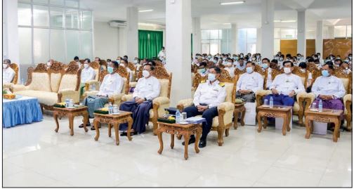 Afterwards, Union Minister Admiral Tin Aung San presented additional wards and certificates to eight officers/staff members who were awarded the honorary medals for their outstanding performance during the one year term of the State Administration Council and staff who excelled in various courses.
