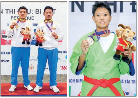 Afterwards, the finals of the Kurash competitions were held at the Hoai Duc Gymnasium. Ma Phyo Swe Zin Kyaw won the silver medal for Myanmar in the women’s 70kg event, and Maung Soe Myint Tun won the bronze medal in the men’s 73kg event.