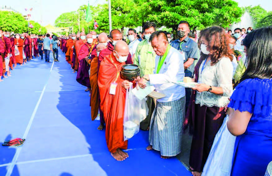 IN commemoration of the Sasana Year 2566, the Maha Mingala Donation Ceremony of the alms and offerings to 10,264 monks in four corners of the Mandalay Moat was simultaneously held at 6 am with 2,566 monks on each of the four corners of the Mandalay Moat on 14 May, Kason Full Moon Day-Buddha Day.