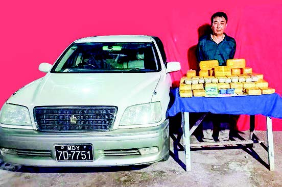 In addition, at 8:10 pm on 12 May, Police stopped and searched a Crown car driven by Yan Naing on the Loilen-Taunggyi Road near the tollgate in Loilen Township and seized 540,000 stimulant tablets.