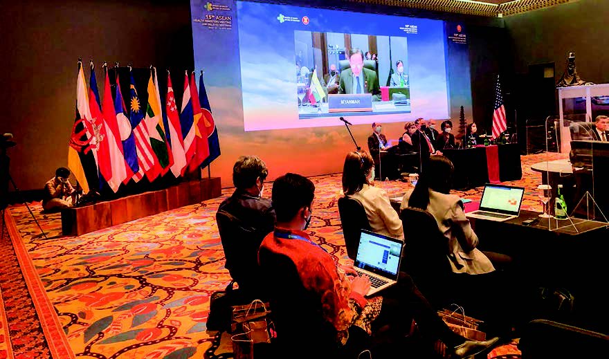 In the ASEAN-US Health Ministers’ Meeting attended by health ministers from ASEAN including Myanmar and US Department of Health and Human Services, Union Minister Dr. Thet Khaing Win discussed that strengthening the health system plays an important role in public health emergencies. He said Myanmar has made every effort to control the spread of the COVID-19 epidemic in line with the five-point roadmap of the State Administration Council despite the sabotage acts carried out by terrorist groups to health care staff at vaccination sites. He highlighted that the COVID-19 vaccinations have been carried out to persons with disability, armed ethnic organizations, displaced persons, in addition to the set targeted groups. He added that the vaccination to the children age 12 and above will be conducted in coming weeks.