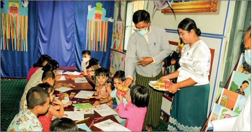At noon, he visited the district public library of Myeik IPRD and greeted book borrowers and student readers in the kids’ reading room.